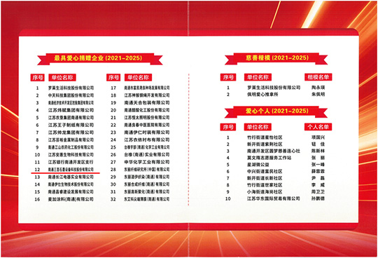 日前,三圣石墨荣获南通开发区慈善总会“最具爱心捐赠企业”(2021-2025)光荣称号,这使得我司慈善公益事业再添一项殊荣。